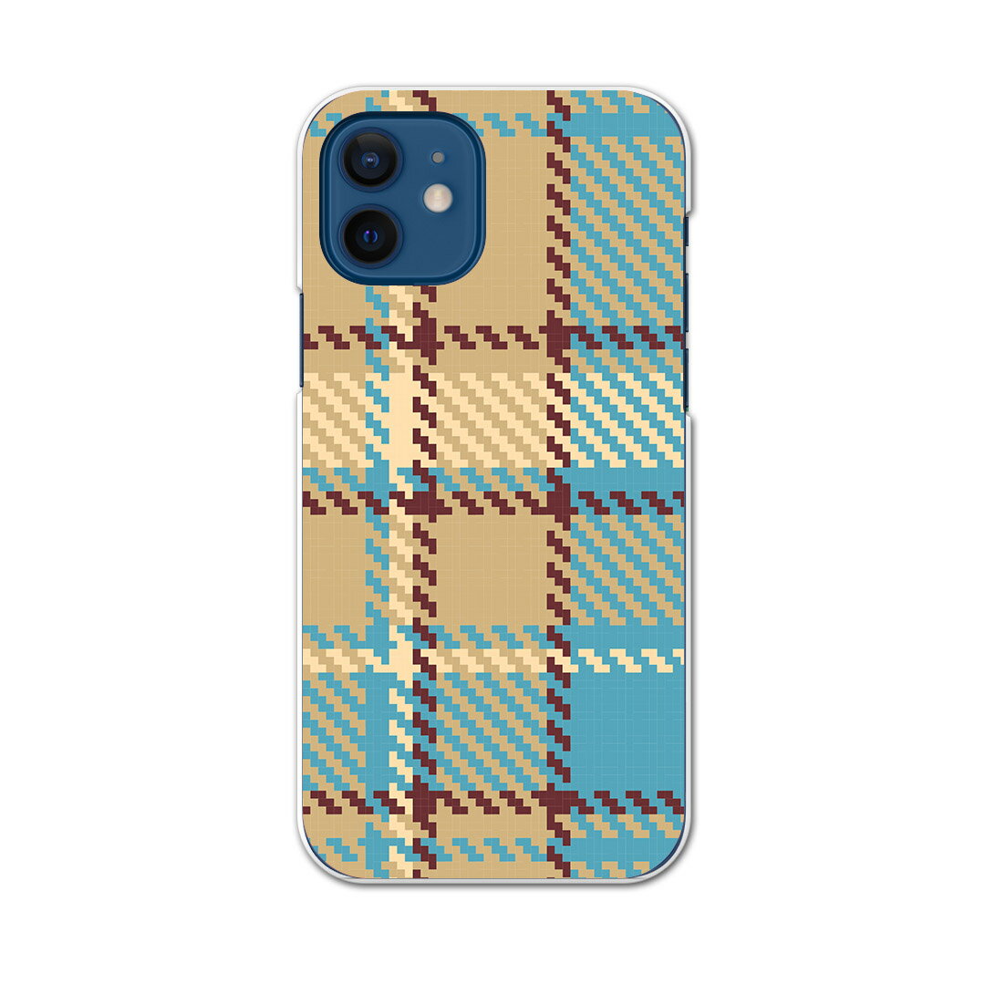 iPhone12 mini 5.4インチ 専用ハードケース アイフォン12 mini 用カバー igcase 各キャリア対応 スマホカバー カバー ケース pc ハードケース 004077 チェック・ボーダー チェック ブラウン 青